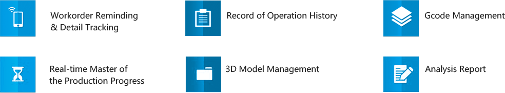 O sistema de gerenciamento de cluster MES é opcional para gerenciar grandes quantidades de impressoras 3D, até 200 conjuntos. É adequado para as fábricas fazerem produção centralizada, que pode realizar muitas funções, como lembretes de pedidos, acompanhamento de detalhes, mestre em tempo real do progresso da produção, gravação do histórico de operações, etc.
